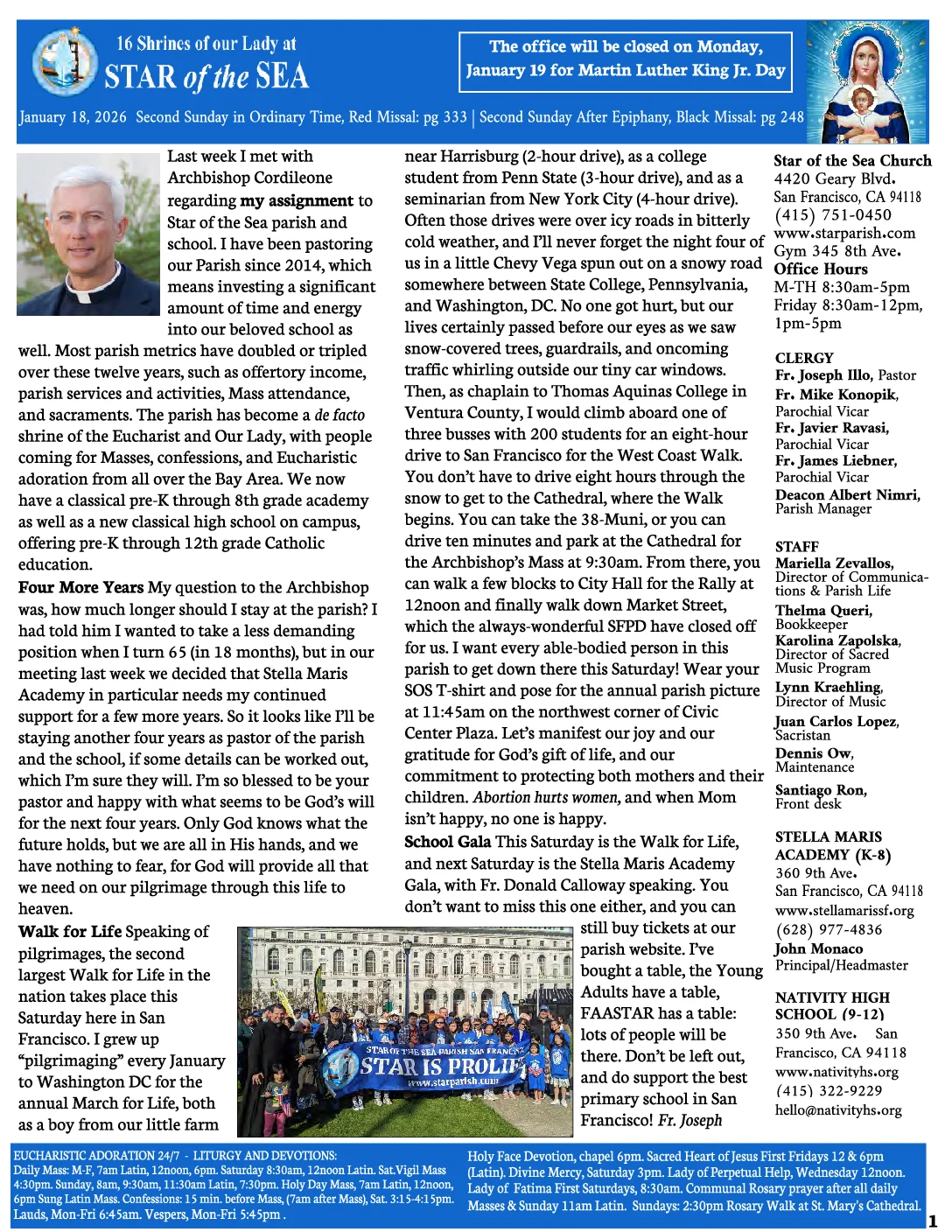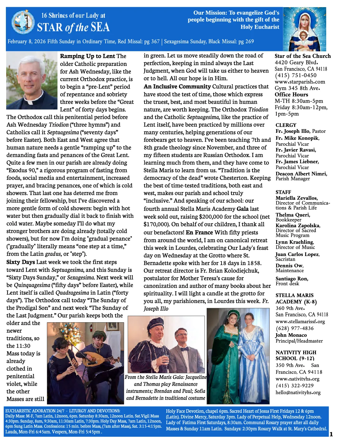 Every week, we publish a church bulletin with news and updates about our parish activities. Join our parish Flocknote (choose “weekly bulletin”), and we will email you the bulletin every Friday!