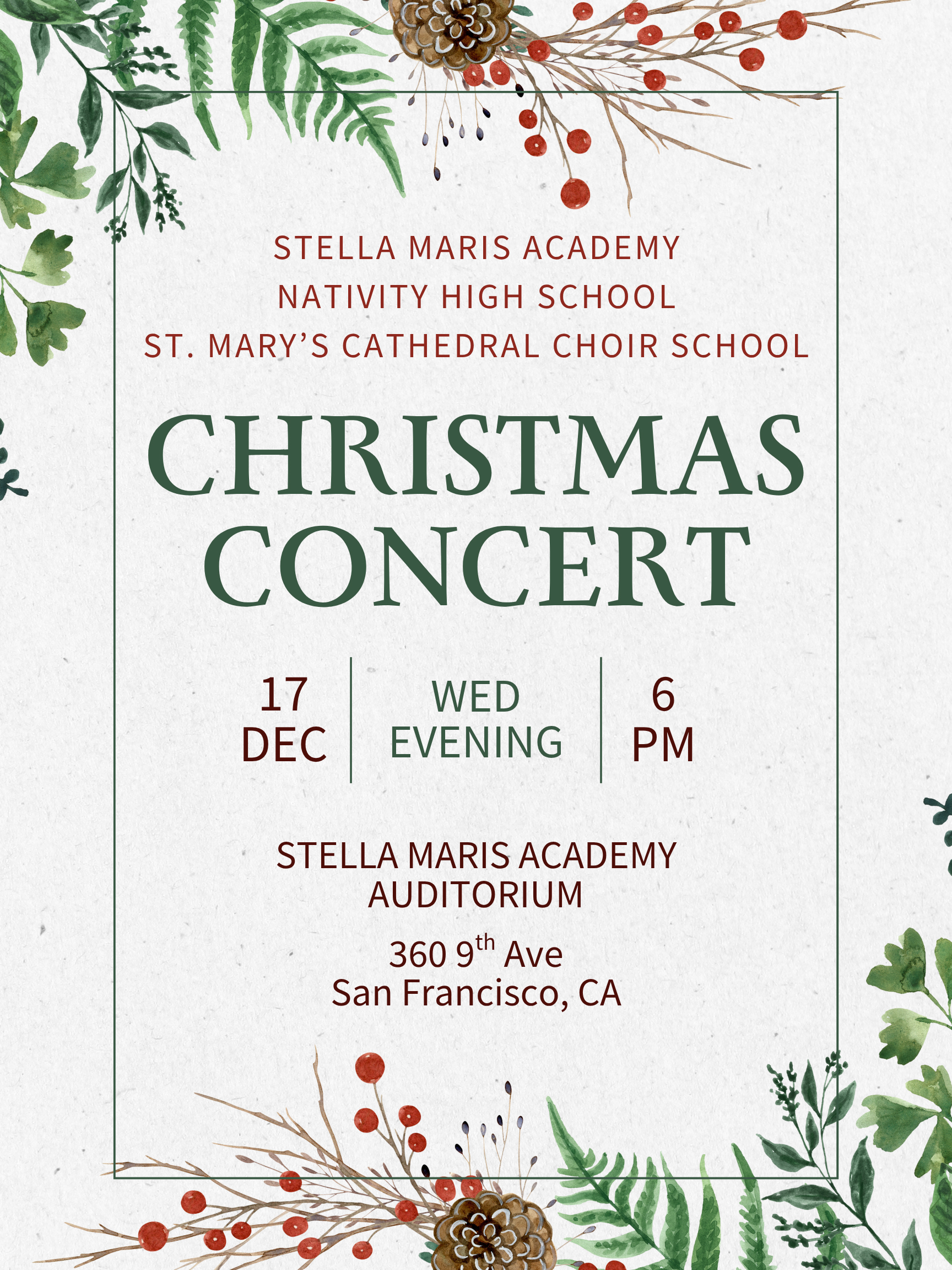 6 pm – Mass, 6:30 pm – SMA Christmas Concert.