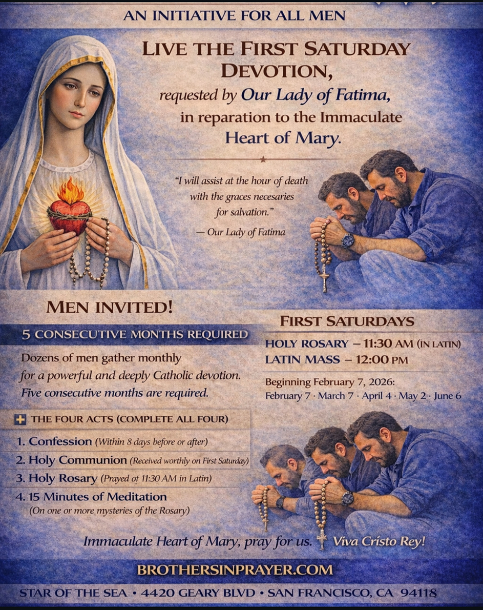 You are invited to live the First Saturday Devotion, requested by Our Lady of Fatima, in reparation to the Immaculate Heart of Mary.